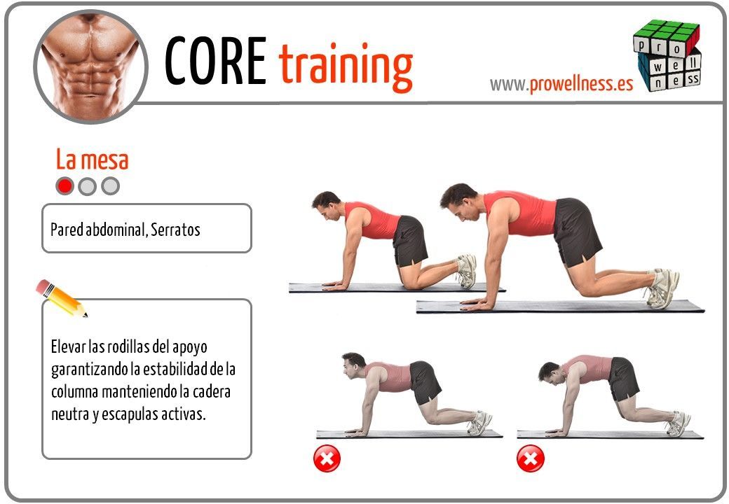 justo antes de elevar las rodillas se produce una activación de la cintura escapular y pared abdominal para mantener la estabilidad al eliminar las rodillas del apoyo. Mantenlo un instante y vuelve a repetir, el objetivo no es mantener la posición estática, sino retarla y conseguirla activando una y otra vez al mecanismo estabilizador.