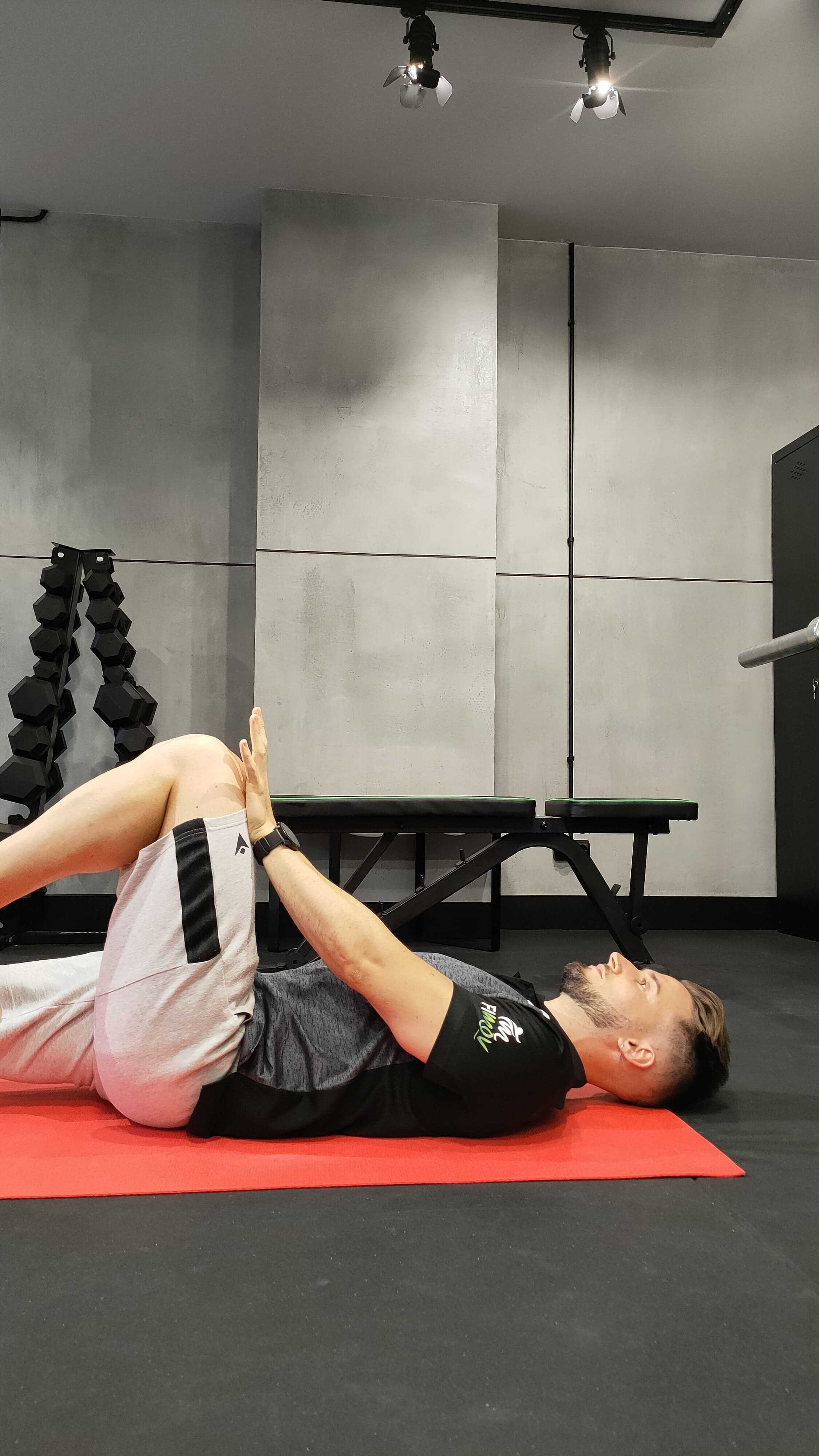 Empuja con la mano la rodilla y a la vez haz fuerza con la rodilla hacia arriba.