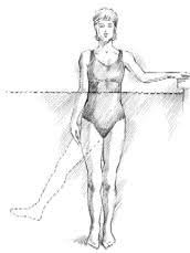Elevar la pierna lateralmente y después llevarla a la posición inicial.