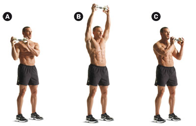 Press de hombro con intercambio de mancuerna