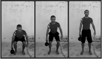 En esta versión del peso muerto levantas la kettlebell por un lado (como si fuera un maletín), activando más tu core para compensar el desequilibrio.